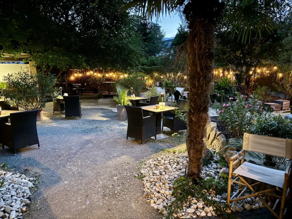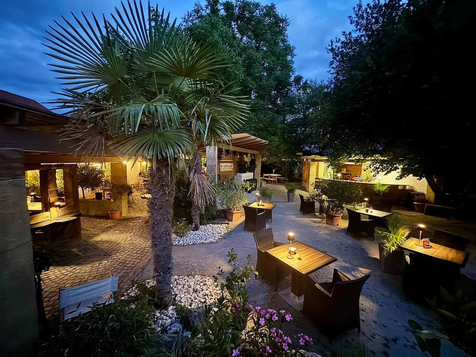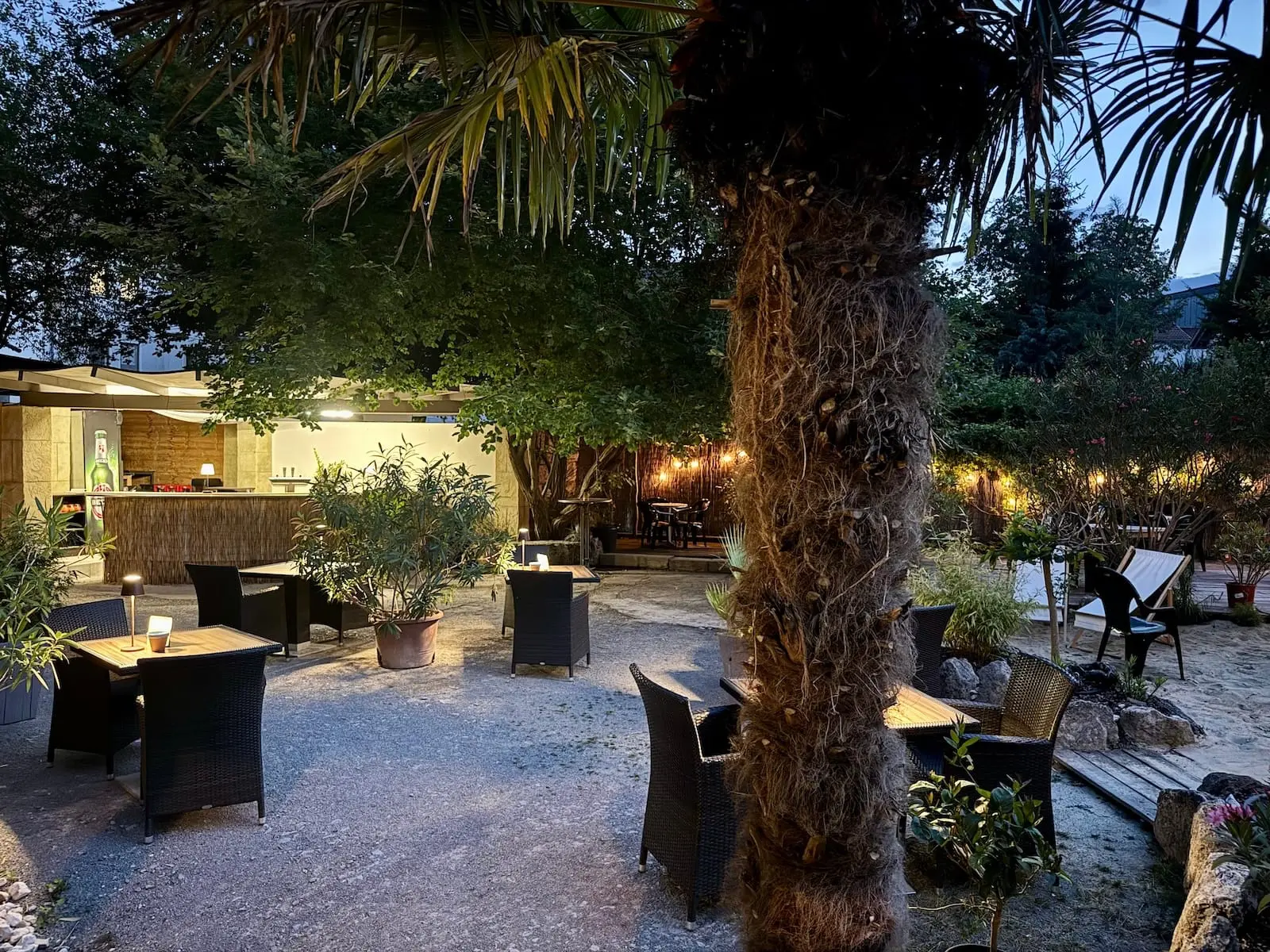 Im mediterran-spanischen Ambiente genießen Sie romantische Abende zu zweit oder entspannte Gespräche mit Freunden unter Palmen.