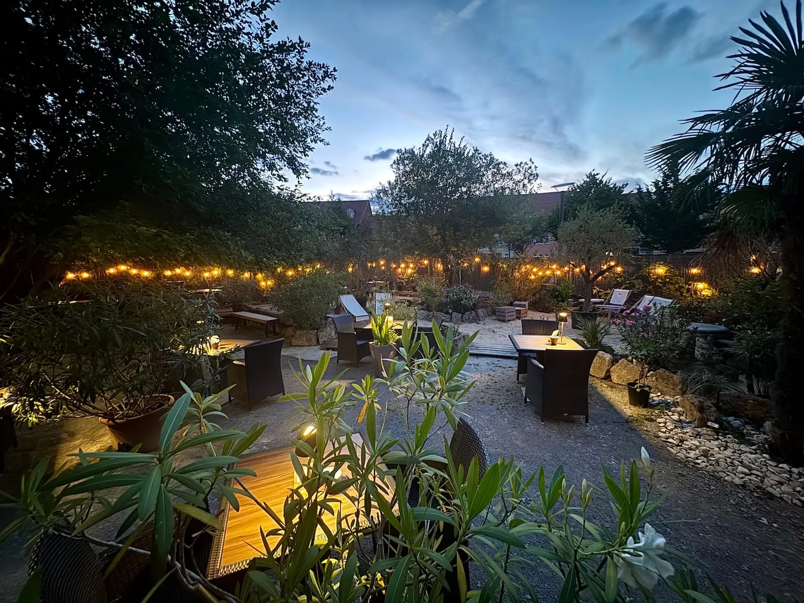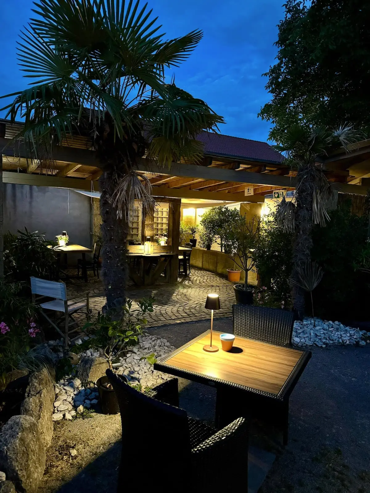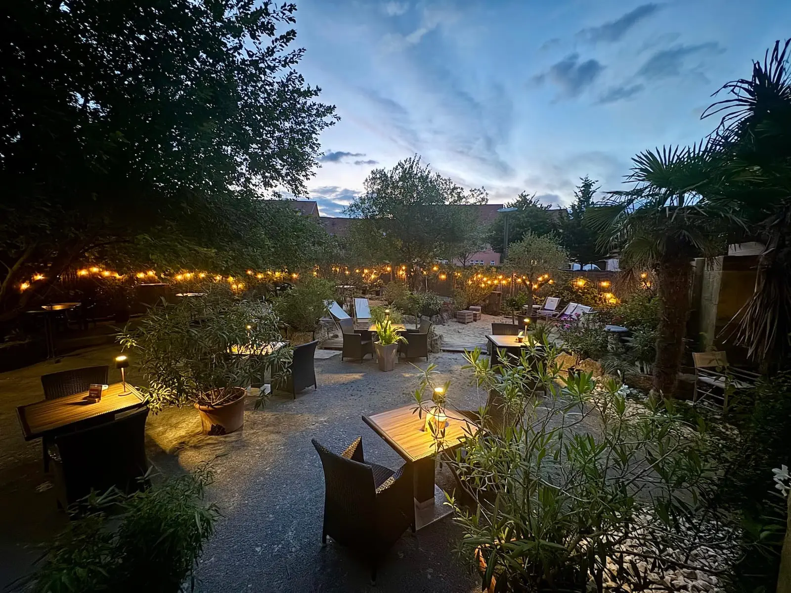 Im mediterran-spanischen Ambiente genießen Sie romantische Abende zu zweit oder entspannte Gespräche mit Freunden unter Palmen.
