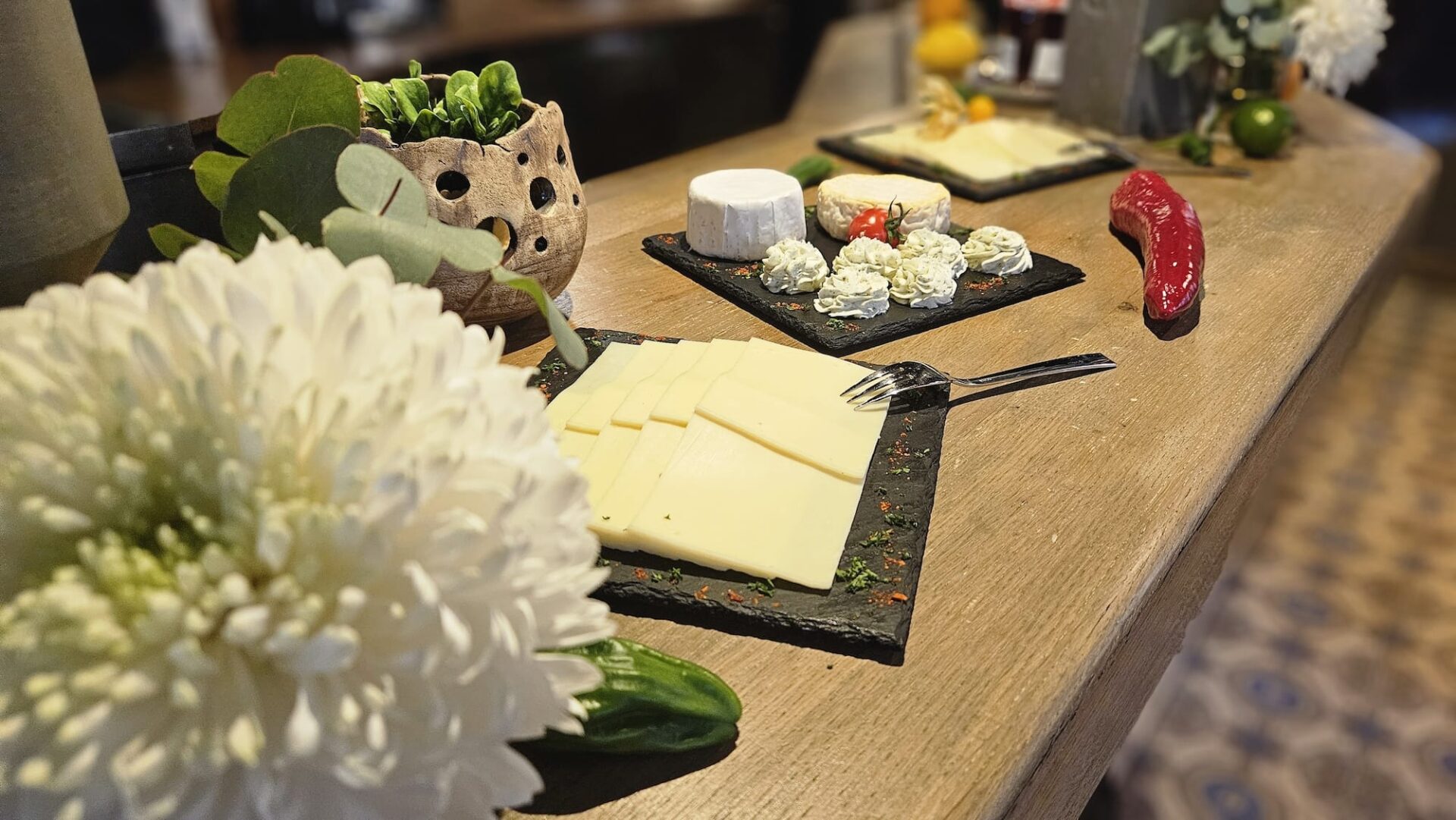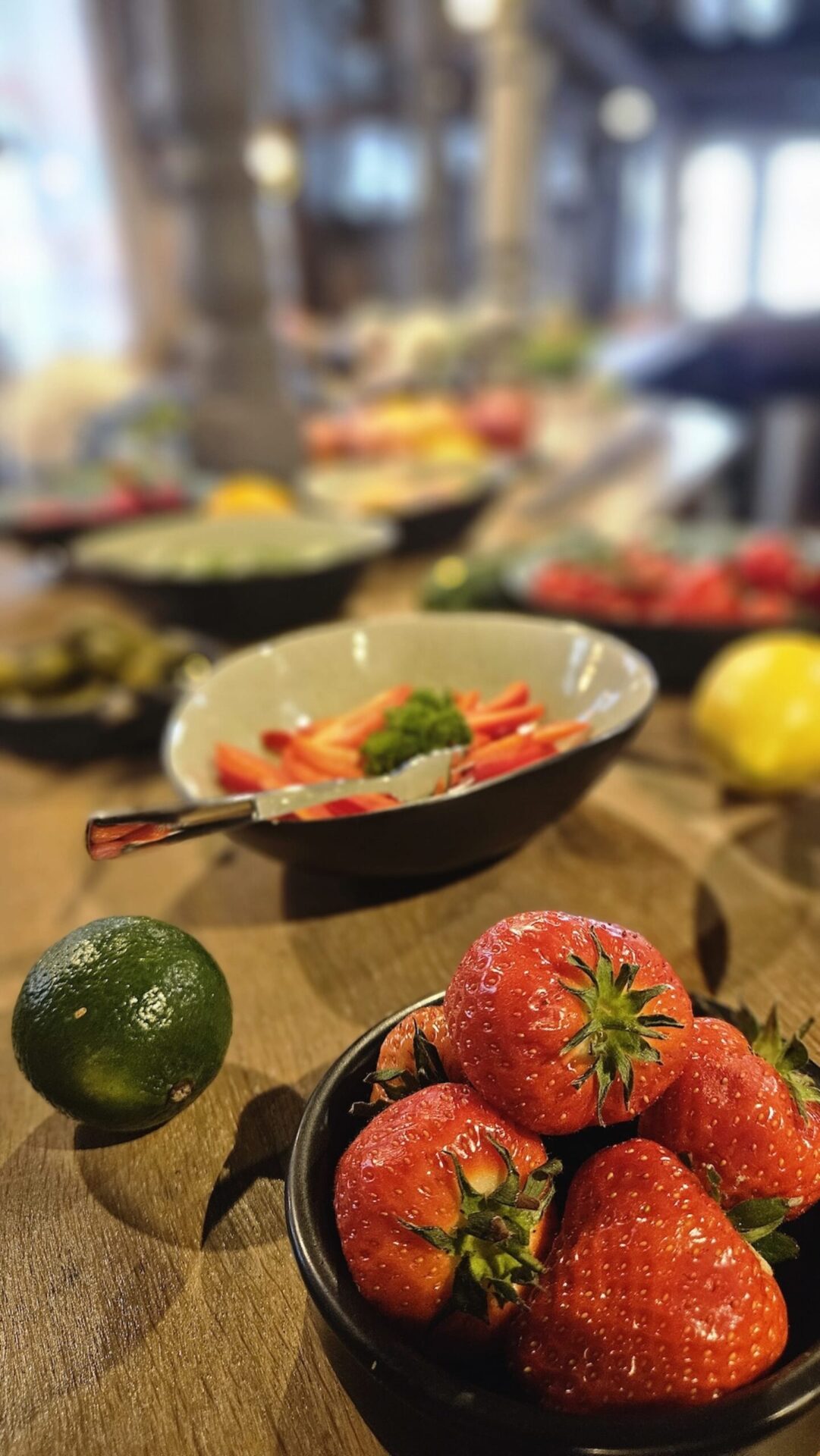 Buffet mit sehr reichhaltiger Auswahl: Obst, Gemüse, Joghurt, Brot, Müsli & Cornflakes, Wurst, Käse, Marmelade, Rührei, Bacon und spanischen Spezialitäten